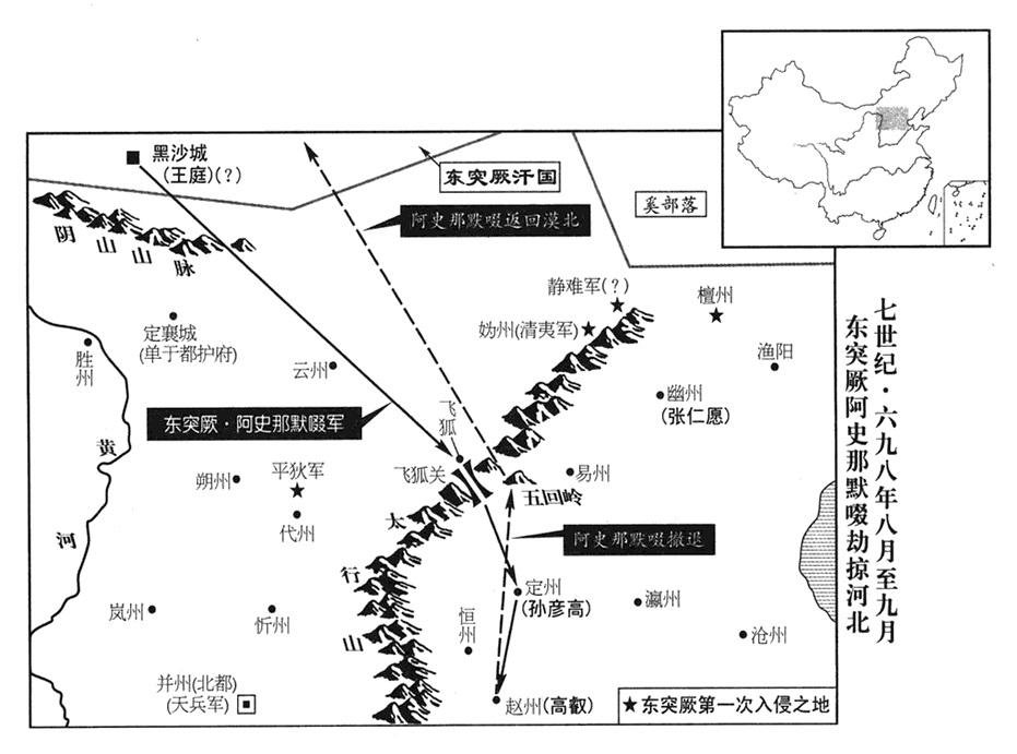 八月二十六日,阿史那默啜攻击飞狐(河北省涞源县)。