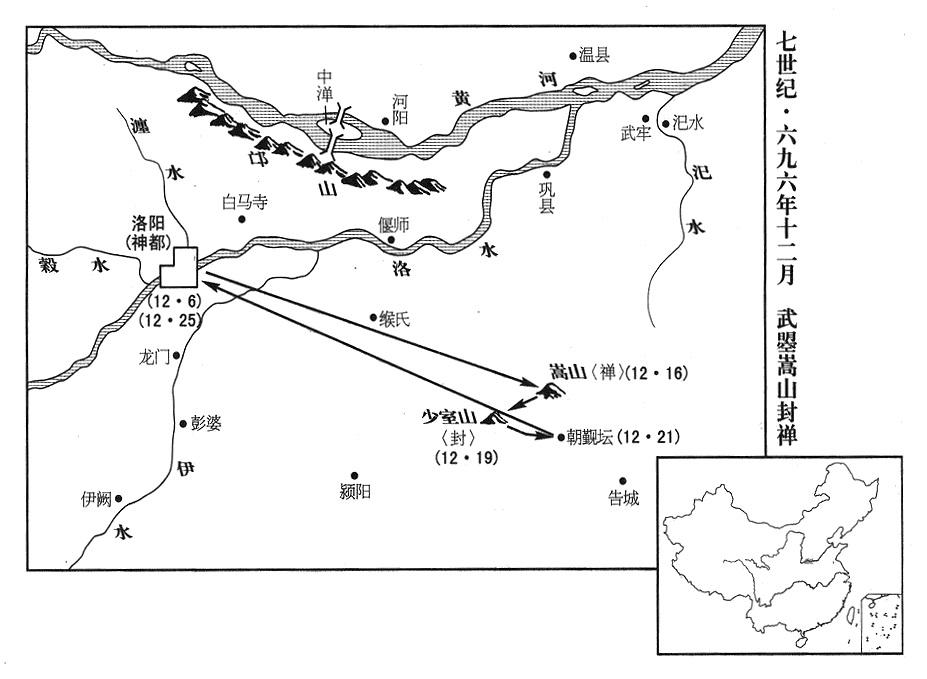 10、二月四日,武曌前往嵩山(中岳·河南省登封县北),经过缑氏(河南省偃师县南縱氏镇。缑,音gōu“〔沟〕”),晋谒升仙太子庙(这是为纪念姬乔“〔姬晋〕”而建的庙宇。姬乔成仙事,参考三〇一年三月注)。