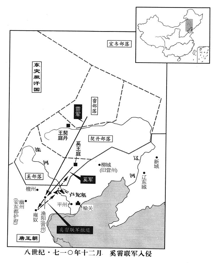 27、唐王朝北方远征军指挥官、一级实质宰相薛讷(参考本年正月),与左监门卫(卫军第十三军)将军杜宾客、定州(河北省定州市)州长崔宣道等,率军六万,从檀州(北京市密云县)出发,西上攻击契丹部落。杜宾客警告说:“天气炎热,士卒们身穿铠甲,手拿刀枪,又要运送辎重粮草,深入敌人国境,势难成功。”薛讷说:“天气炎热,牧草茂盛,游牧部落的牲畜,正大量产下小羊小牛,我们就在敌人手中夺取粮食!天意站在我们这边,一次出击,就可把蛮虏消灭,良机不可丧失。”