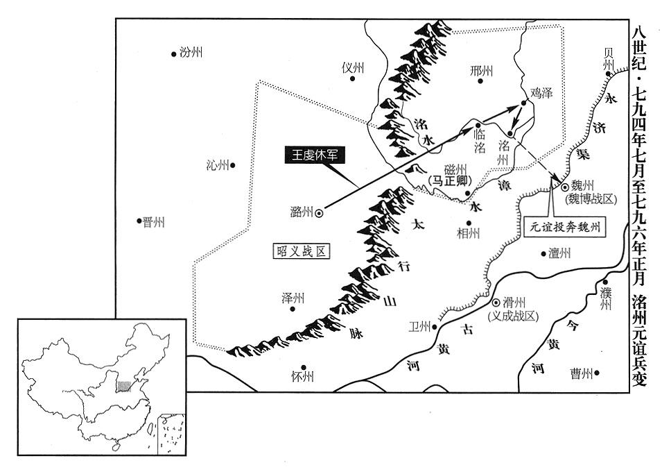 2、最初,卢龙战区(总部设幽州“〔北京市〕”)司令官(节度使)朱滔在贝州(河北省清河县)溃败(参考七八四年五月六日),他所任命的棣州(山东省惠民县)州长赵镐,连同城池投靠成德战区(总部设恒州“〔河北省正定县〕”)司令官王武俊;但不久就触怒王武俊,王武俊召唤他,他拒绝前往。