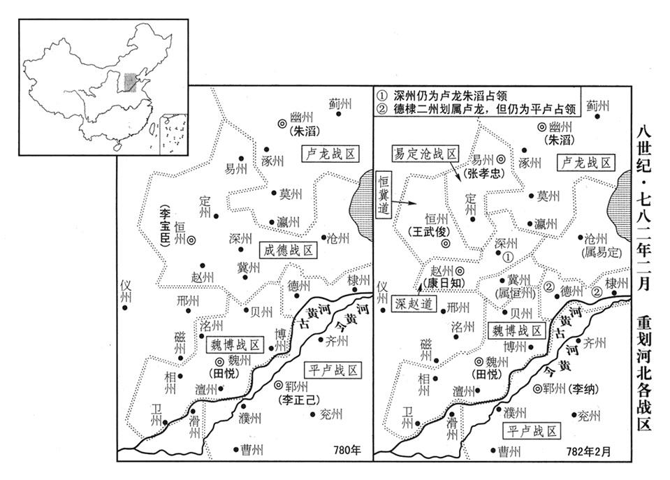 1、春季,正月九日,唐王朝(首都长安“〔陕西省西安市〕”)成德战区(总部设恒州“〔河北省正定县〕”)司令官(节度使)李宝臣(张忠志)逝世(享年六十四岁)。