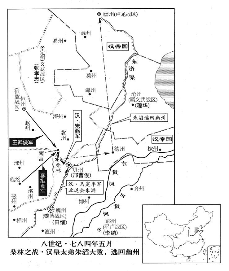 21、七月二十六日,河东战区司令官马燧、昭义战区司令官李抱真(安抱真)、神策军先锋总作战司令(先锋都知兵马使)李晟,在临洺大破田悦军。